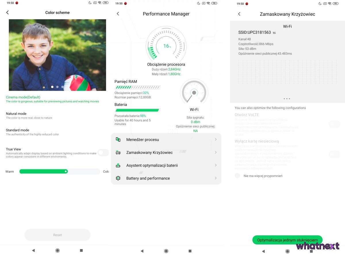 Złego słowa nie można powiedzieć o dostępnych typach łączności. Od zasięgu sieci komórkowej, przez Bluetooth, Wi-Fi, na czytniku linii papilarnych w ekranie kończąc. Wszystko działa szybko i bardzo stabilnie.  W zasadzie tak jak powinno w przypadku flagowego smartfonu.