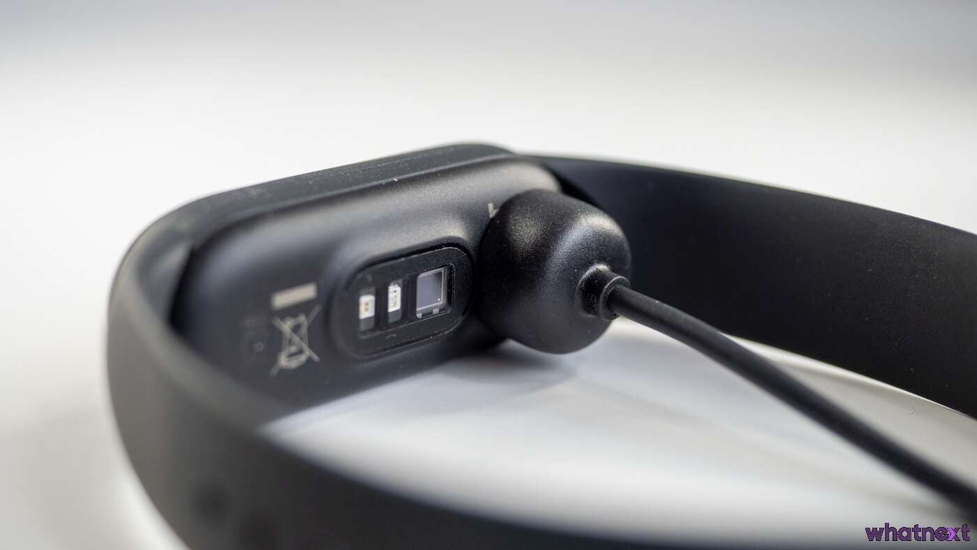 Przy typowym użytkowaniu, obejmującym okresowe pomiary tętna i saturacji, ze stałą synchronizacją powiadomień i ustawieniem podświetlenia ekranu na 3-4 skali, Xiaomi Mi Band 6 jest w stanie działać 10-11 dni. To bardzo solidny wynik. Akumulator naładujemy do pełna w ok 1,5 godziny.