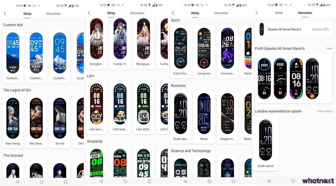 Do tego funkcja kluczowa – zmiana tarczy. W pamięci opaski możemy przechowywać pięć z nich. Wybór z poziomu aplikacji jest bardzo duży. Tarcze są przeróżne. Od naprawdę mocno przekombinowanych z różnymi obrazkami, przez zawierające zdecydowanie za dużo informacji, po bardzo proste i minimalistyczne. Zdecydowanie każdy znajdzie tutaj coś dla siebie.
