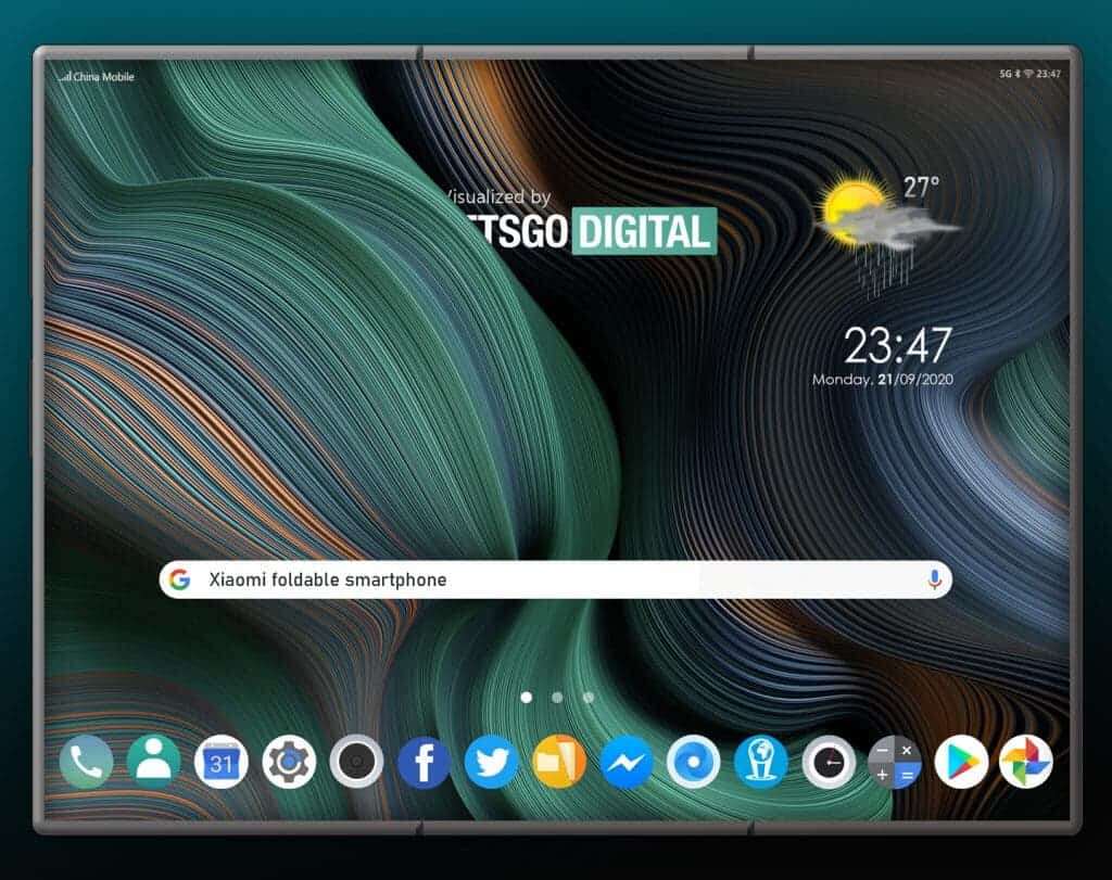 Na środku jednej z wyświetlaczy znajduje się otwór na aparat. Po prawej stronie znajdują się przyciski oraz tacka na kartę SIM. Głośniki i złącze USB-C umieszczone są na górze i na dole smartfona. Ciekawe, czy Xiaomi rzeczywiście zrealizuje taki projekt składanego samrtfona.
