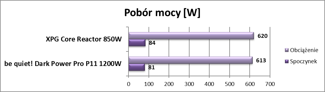 Zasilacz wypadł znakomicie w testach. Napięcia są stabilne oraz bardzo blisko idealnych. Przy tym zasilaczu możecie być pewni jakości nawet po podłączeniu najmocniejszego sprzętu. Temperatury również nie są wysokie, choć widać, że nagrzewa się cześć obudowy, do której nie sięga wentylator. Zasilacz jest też cichy nawet pod obciążeniem – nie powinniście go usłyszeć. XPG Core Reactor 850W ma odznaczenie 80 Plus Gold. Dla obciążenia 10% sprawność wynosi 86,35%, dla 20% – 90,88%, 50% – 91,47%, a dla 100% – 88,79%.