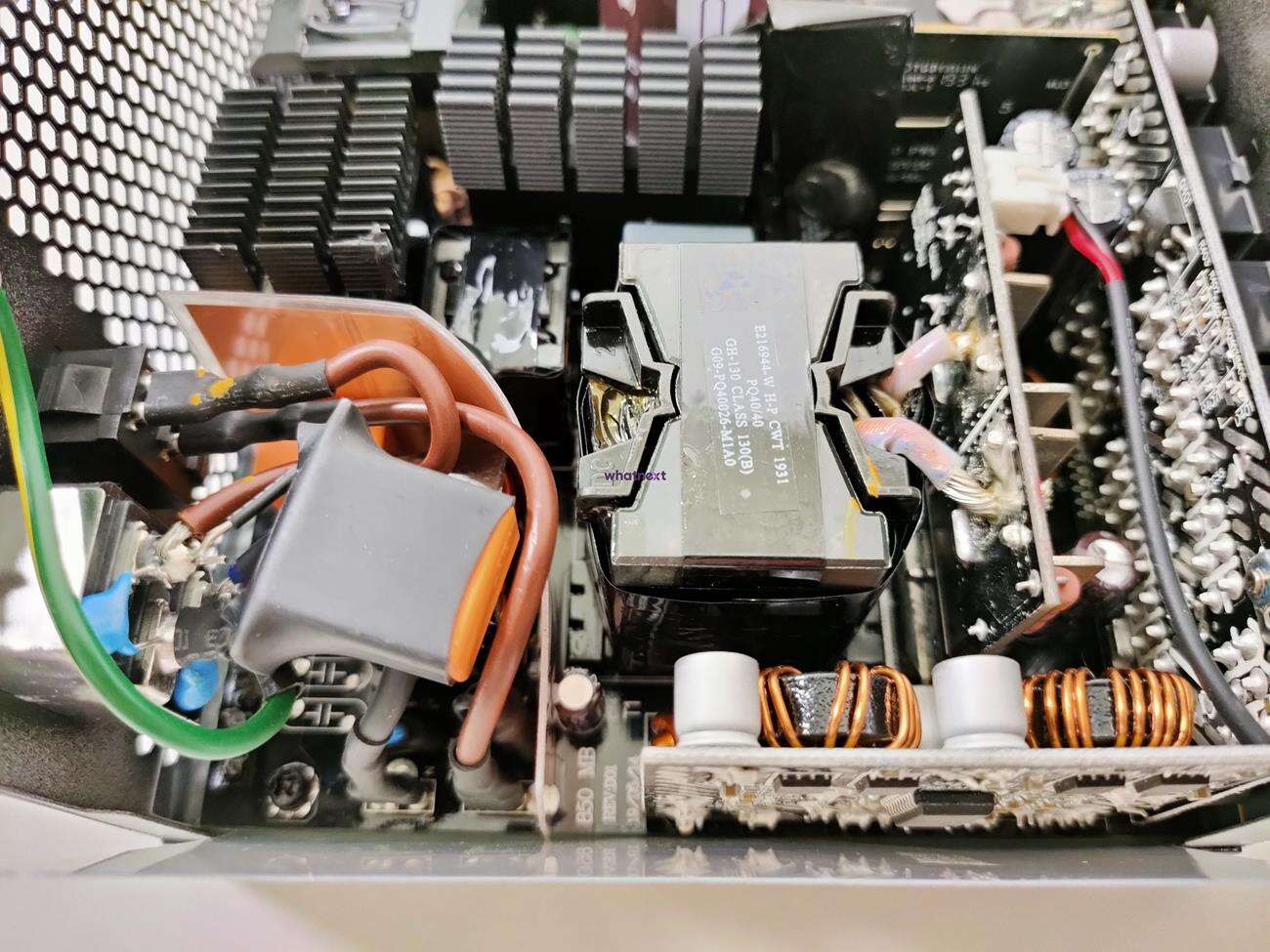 Zasilacz bazuje na platformie CWT. Największy kondensator jest produkcji Nippon Chemi-Con i ma parametry 420 V i 680 uF. Może on pracować w temperaturze do 105°C. Pozostałe kondensatory są również japońskiej konstrukcji. Zasilacz ma przetwornice DC-DC oraz aktywne PFC. Warto też zwrócić uwagę na sporą ilość zabezpieczeń: zabezpieczenie nadprądowe (OCP), zabezpieczenie nadnapięciowe (OVP), zabezpieczenie podnapięciowe (UVP), zabezpieczenie nadmocowe (OPP), zabezpieczenie przed zwarciem (SCP), zabezpieczenie przed nadmierną temperaturą (OTP), działanie bez obciążenia (NLO), zabezpieczenie przeciwprzepięciowe i przed prądem udarowym (SIP).