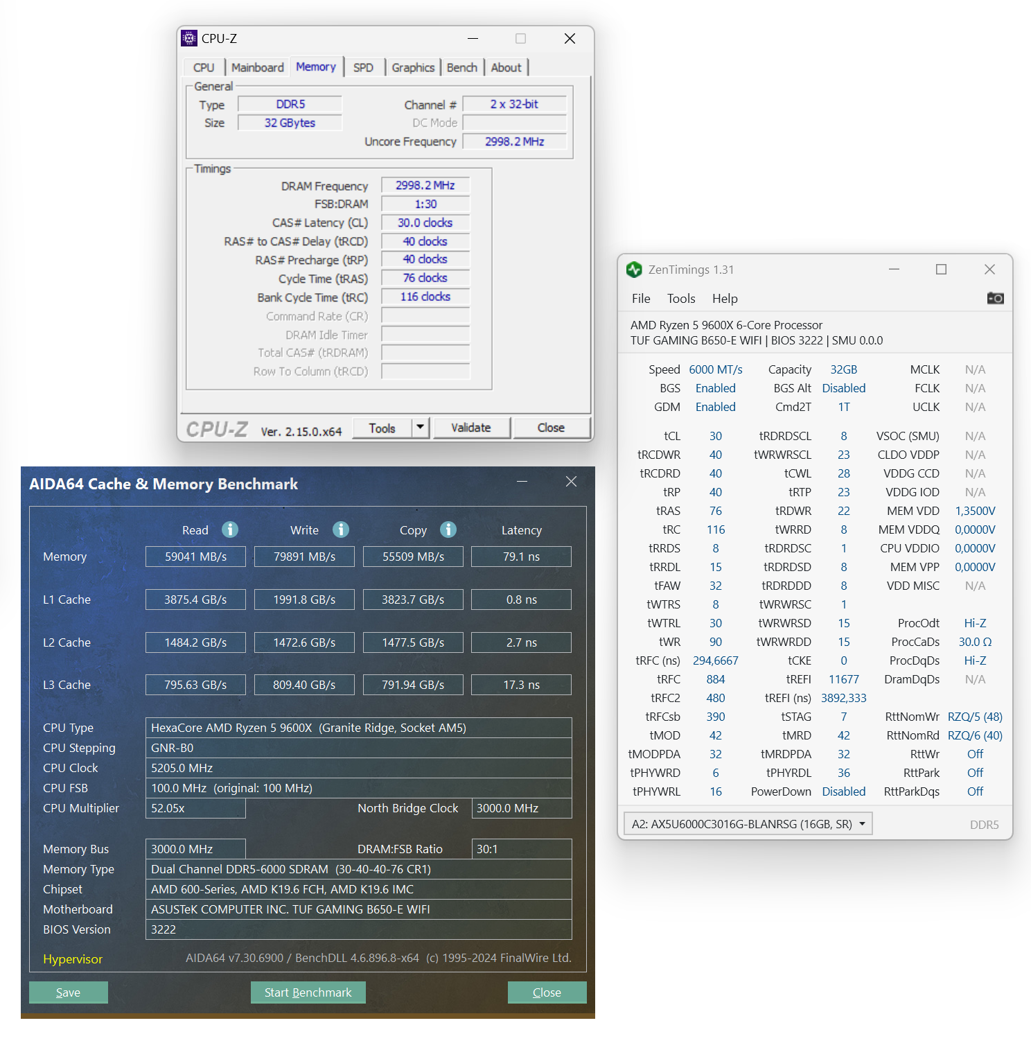 - EXPO DDR5-6000 CL30-40-40-76-116 @ 1.35 V