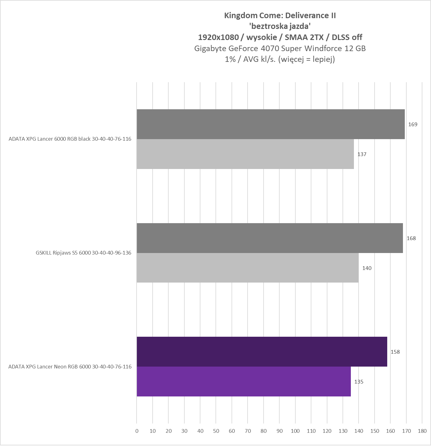 - Kingdom Come: Deliverance II – sekwencja testowa (3 próby i wyciągana średnia)