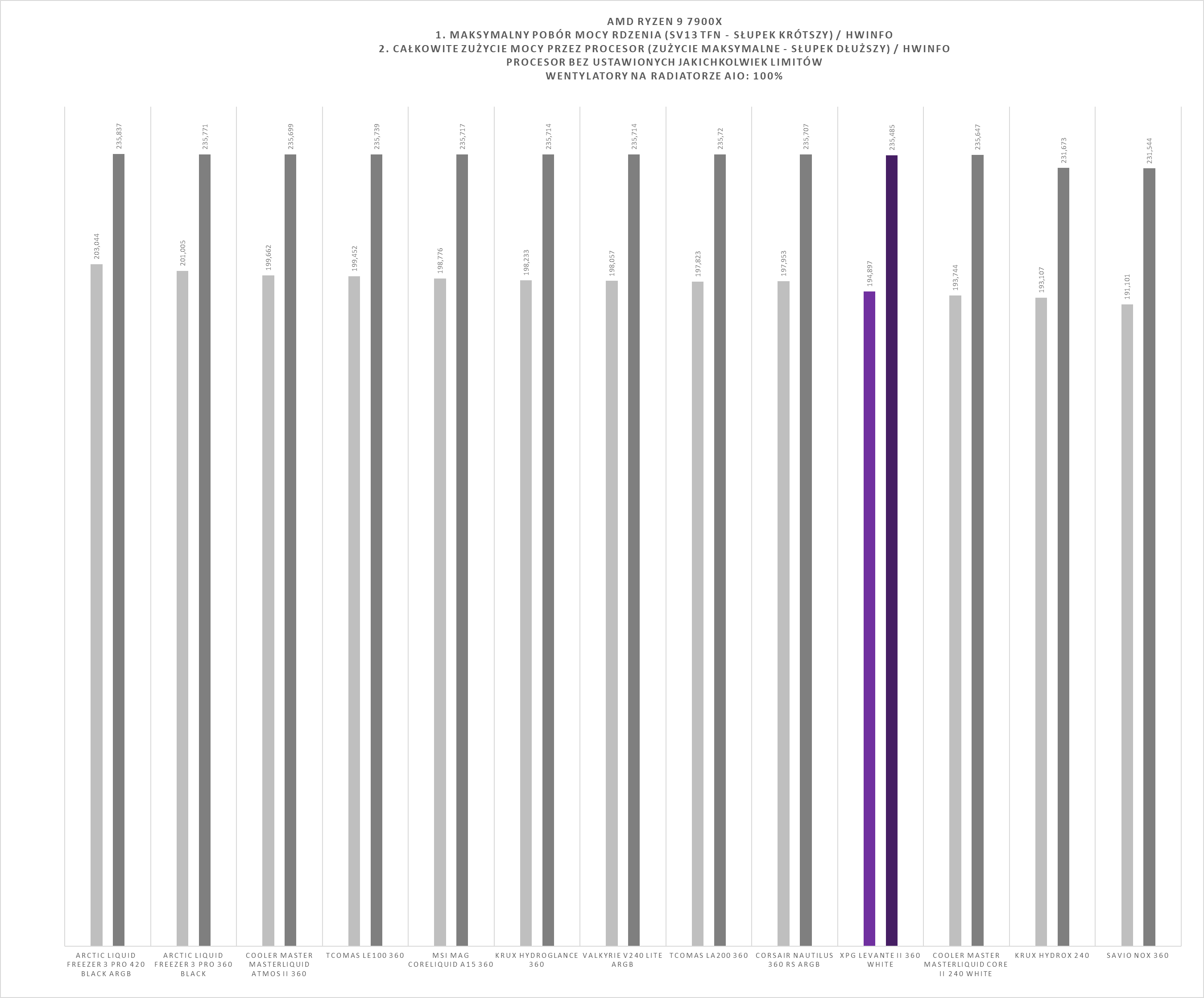 testy wydajnościowe TDP: ~ 100W / ~ 150W / ~ 200W / ~ 225W (delta temperatury)
