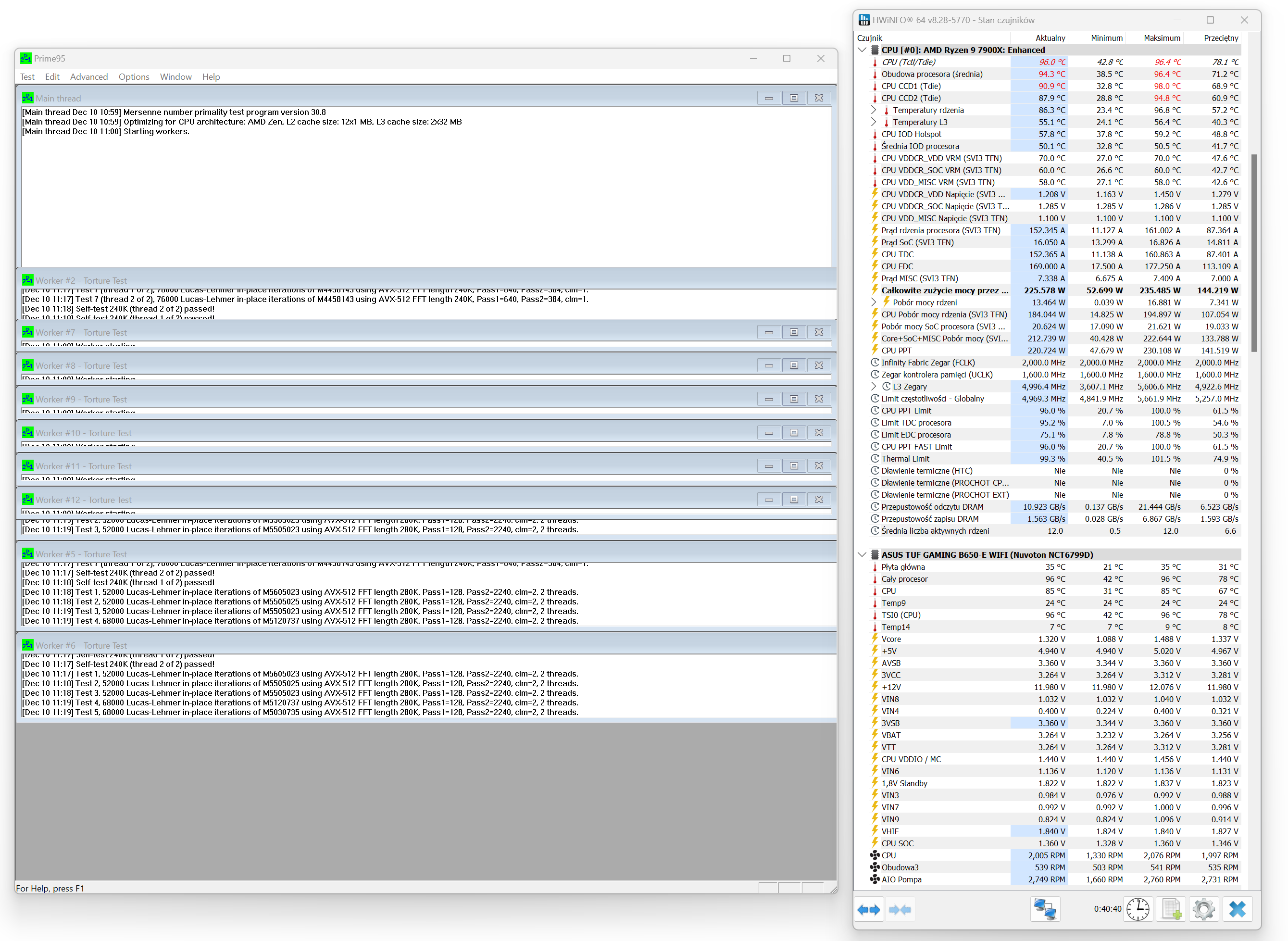 AMD Ryzen 9 7900X ~ 170W (domyślne TDP dla tego procesora)