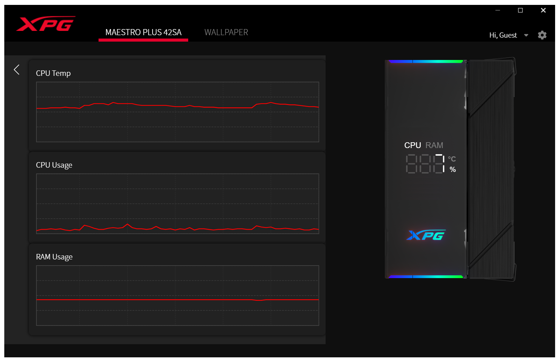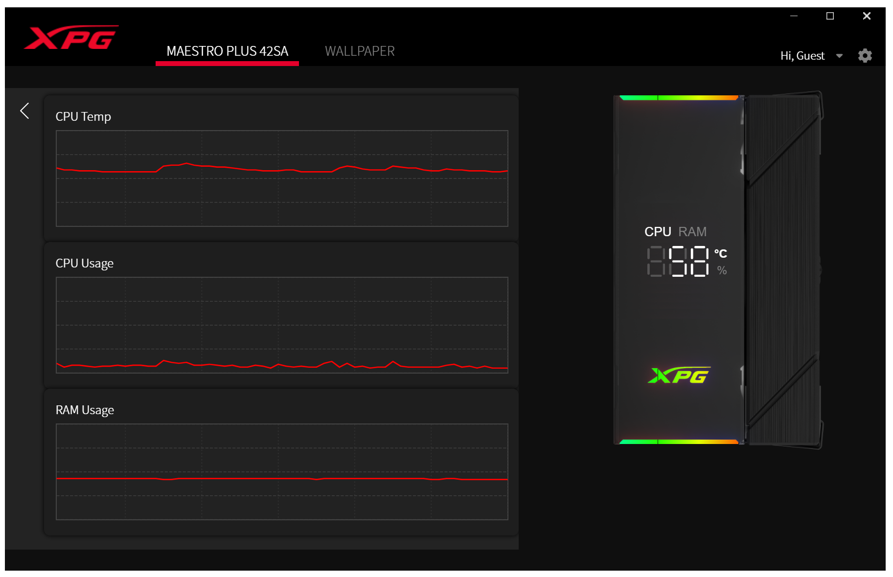 Chłodzenie XPG Maestro Plus 42SA współpracuje z autorskim oprogramowaniem XPG Prime, które stanowi centralny punkt zarządzania ekosystemem producenta. Software charakteryzuje się nowoczesnym, czarnym interfejsem i jest bardzo intuicyjny w obsłudze.