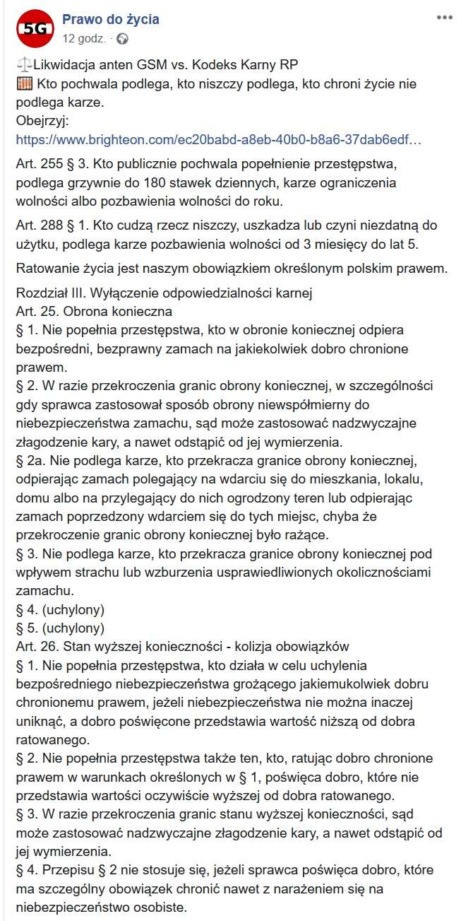Zagrożenie, że sytuacja powtórzy się w Polsce, jest realne. Jeden z motorów napędowych dezinformacji na temat sieci 5G w Polsce, stowarzyszenie Prawo do życia, już zaczyna kampanię na ten temat. Tutaj wskazuje, że podpalenie nadajnika będzie działaniem zgodnym z prawem: