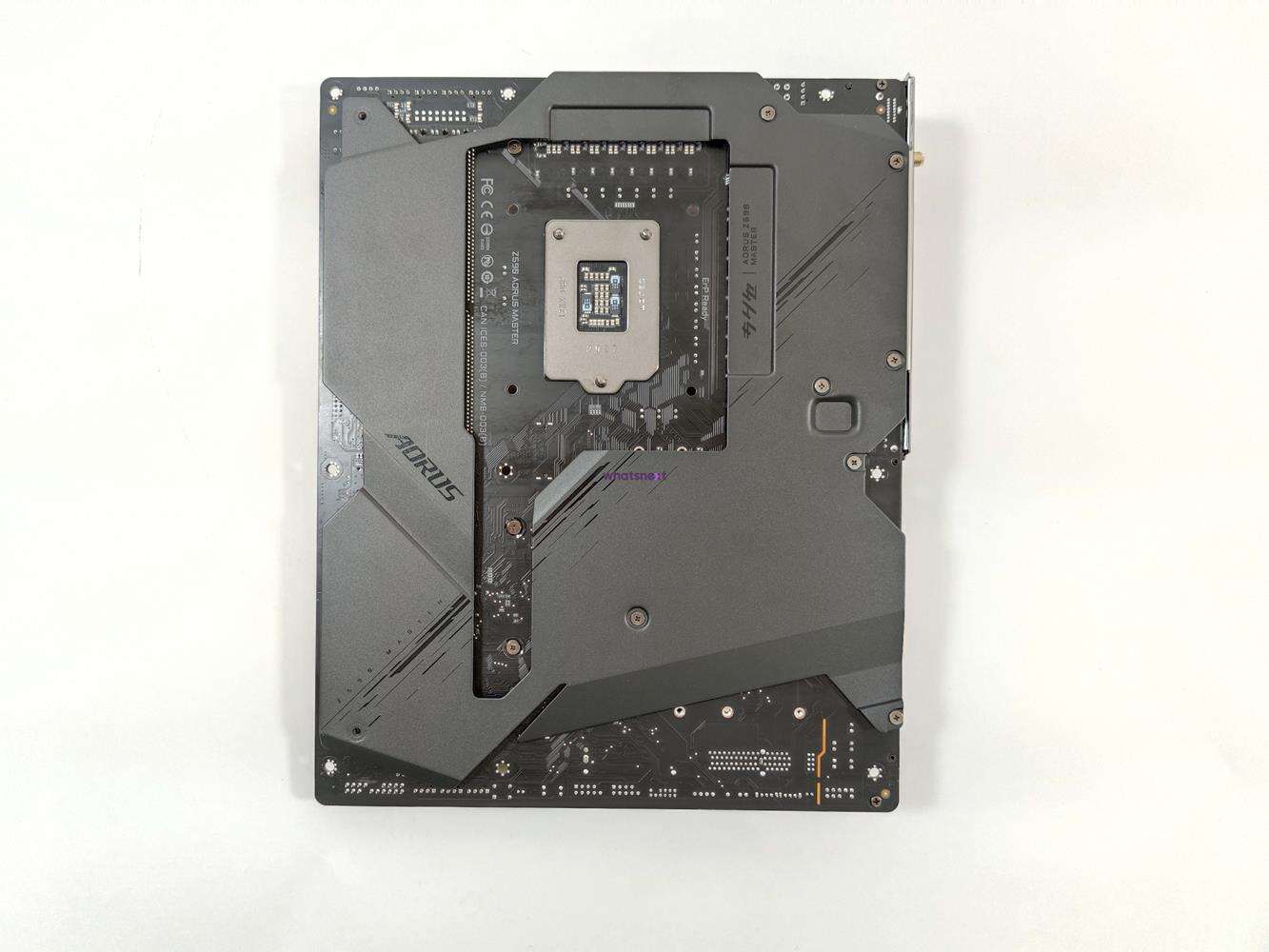 Płyta na pewno wygląda bardzo dobrze. Podoba mi się zaślepka I/O z lekkim podświetleniem – będzie to dobrze wyglądało w obudowie z oknem. Poza tym RGB widoczne jest na radiatorze chipsetu. Cała reszta jest czarno-szara, więc moim zdaniem Z590 Aorus Master naprawdę nieźle się prezentuje. Płyta to konstrukcja ATX o wymiarach 305 mm x 244 mm.