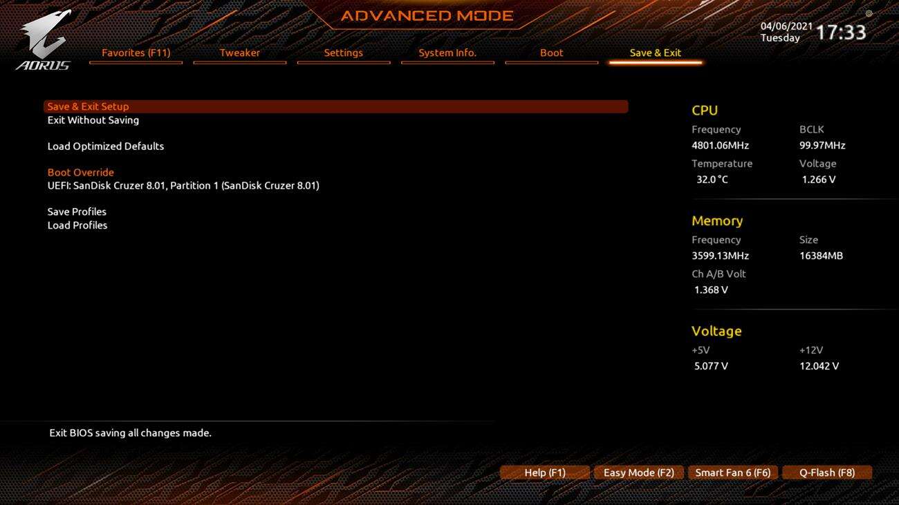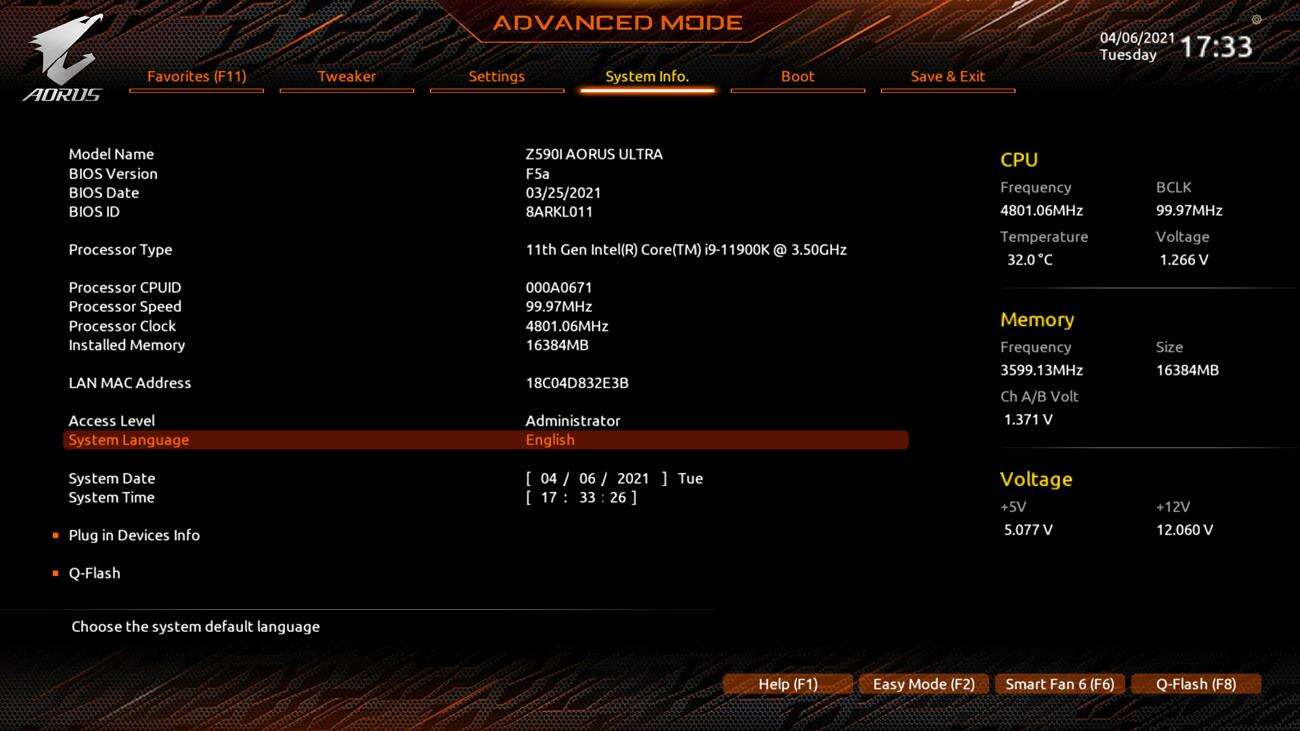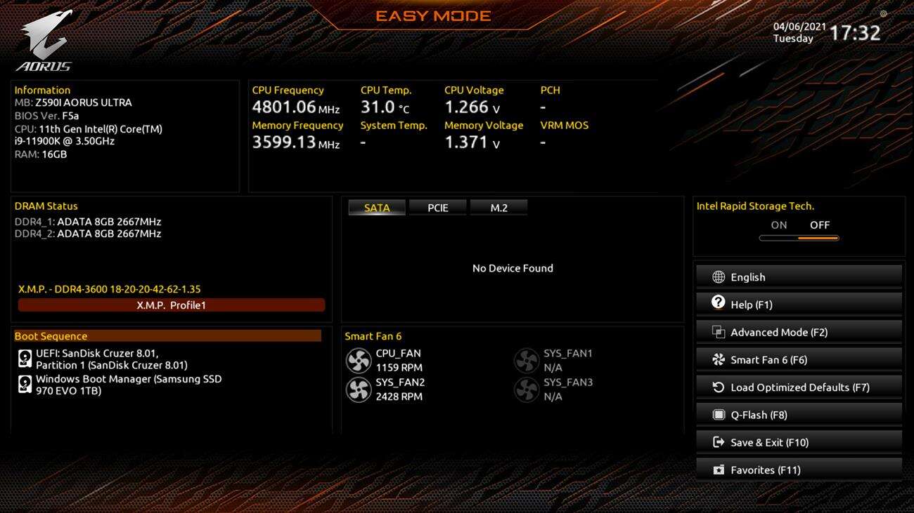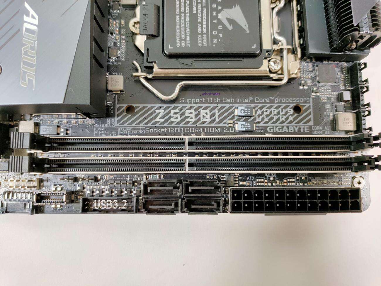Na Z590I Aorus Ultra zamontujecie pamięci o prędkości do 4600 MHz (choć najnowszy BIOS dodaje wsparcie nawet dla szybszych modułów). Miejsca są dwa, więc maksymalna pojemność może wynosić 64 GB. Płyta oferuje wsparcie dla profili XMP, więc tutaj bez problemów odpowiednio ustawicie pamięci.