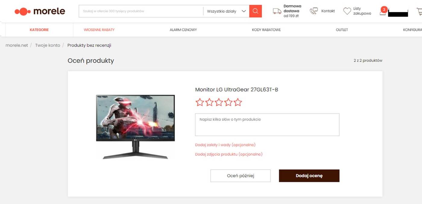 Na stronie Morele.net przy każdym produkcie i usłudze znajduje się zakładka “Opinie”, w której nasi Klienci mają możliwość dodania komentarza. W tym miejscu pojawiają się wszystkie opinie, zarówno te pozytywne, jak i negatywne. Chcąc ułatwić potencjalnym Klientom podjęcie decyzji o zakupie produktów lub skorzystaniu z danej usługi, dokładamy wszelkich starań, aby komentarze pojawiały się we właściwym miejscu. W przeciwnym razie nie zostają zaakceptowane przez moderatora i nie są widoczne. Przykładowo komentarz dotyczący usługi nie będzie widoczny pod produktem. W przypadku opinii dotyczących usług również dbamy o to, aby pojawiały się wyłącznie te komentarze, które są związane z daną usługą.