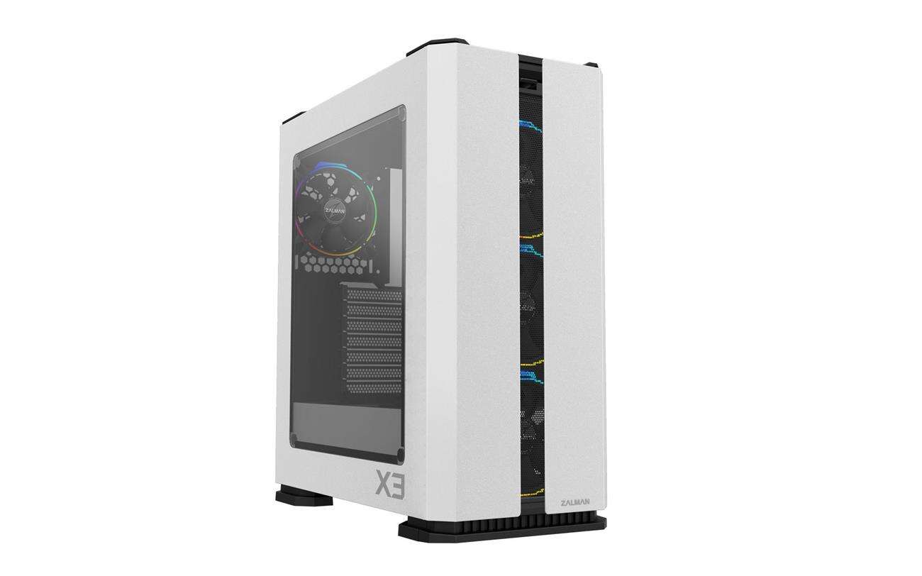Maksymalna długość karty graficznej to 350 mm. Zalman X3 White RGB ma siedem zaślepek PCI oraz zmieści cztery dyski. W obudowie można też łącznie zainstalować sześć wentylatorów. Fabrycznie zamontowane są cztery 120 mm – mają one podświetlenie ARGB.