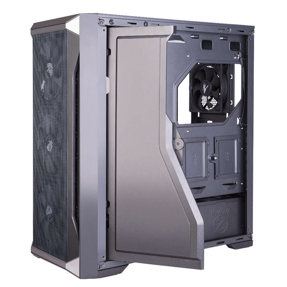 Boki obudowy umieszczone zostały na zawiasach i otwierają się jak drzwi. W środku zmieścicie karty graficzne o długości do 350 mm i chłodzenia procesora o wysokości do 162 mm.