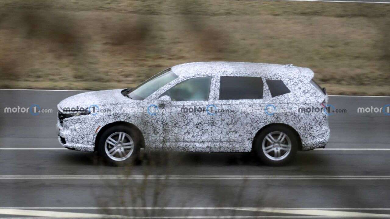 Zdjęcia Honda CR-V nowej generacji ujawniają też nieco większą maskownicę z nowym wzorem, którą otaczają reflektory LED o najwyraźniej podzielonej konstrukcji, choć może to być tylko gra kamuflażu. Ten nie ukrył też m.in. umieszczonych niżej bocznych lusterek na drzwiach, wyrazistej linii nad klamkami drzwi, a zdjęcia z profilu bocznego ujawniły nawet system infotainment w stylu tabletu na górze konsoli środkowej.