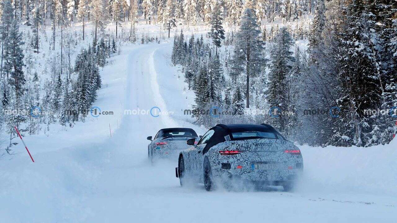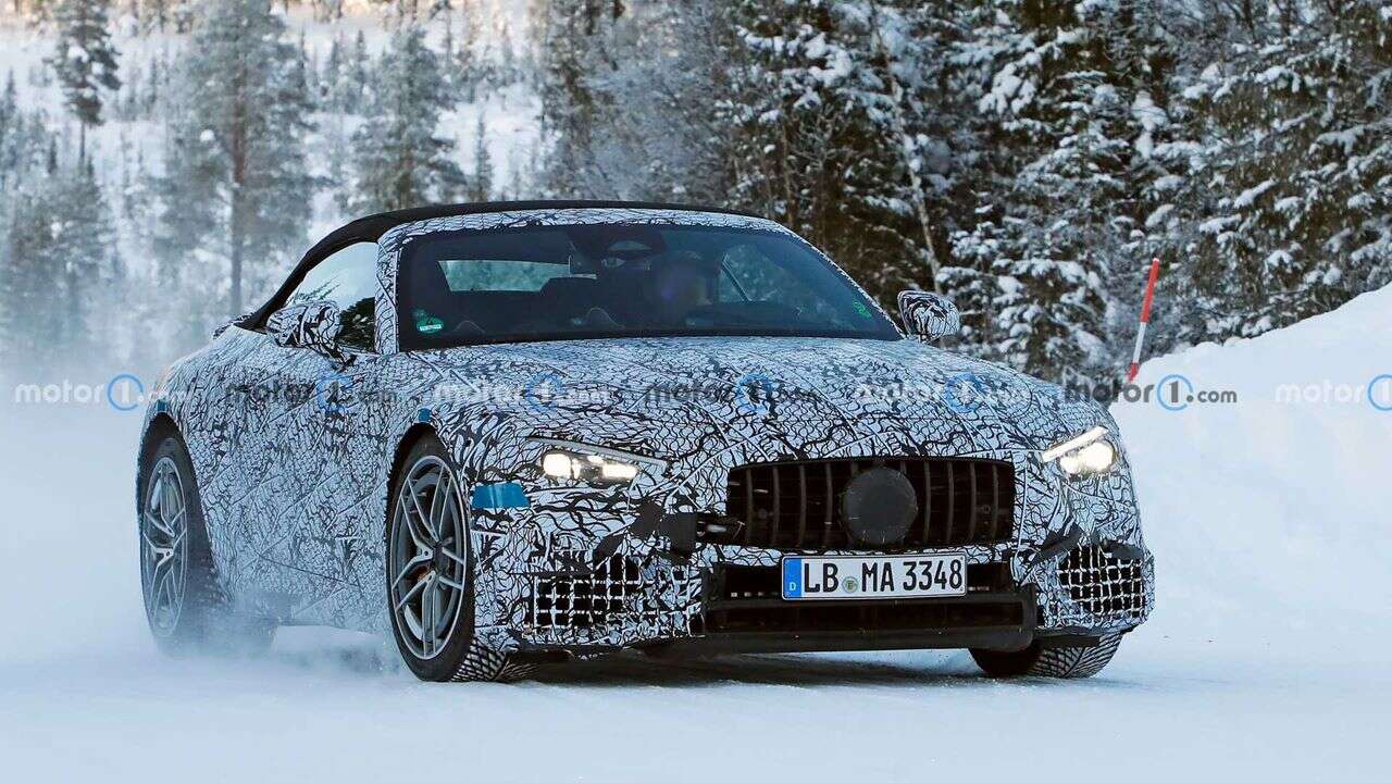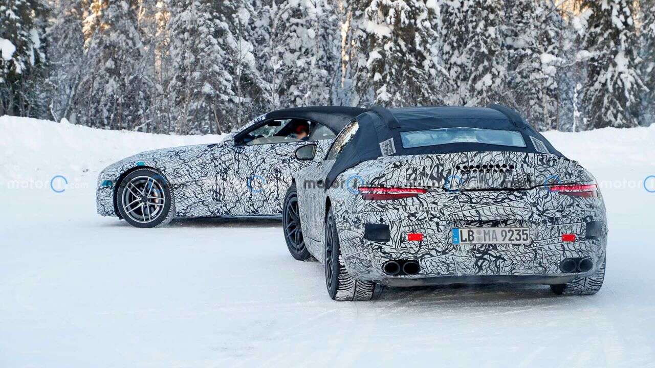 Para zakamuflowanych prototypów ruszyła na podbój zimnych warunków w Szwecji, co zapewniło nam zdjęcia modeli Mercedes SL 2022 z ich materiałowymi dachami.