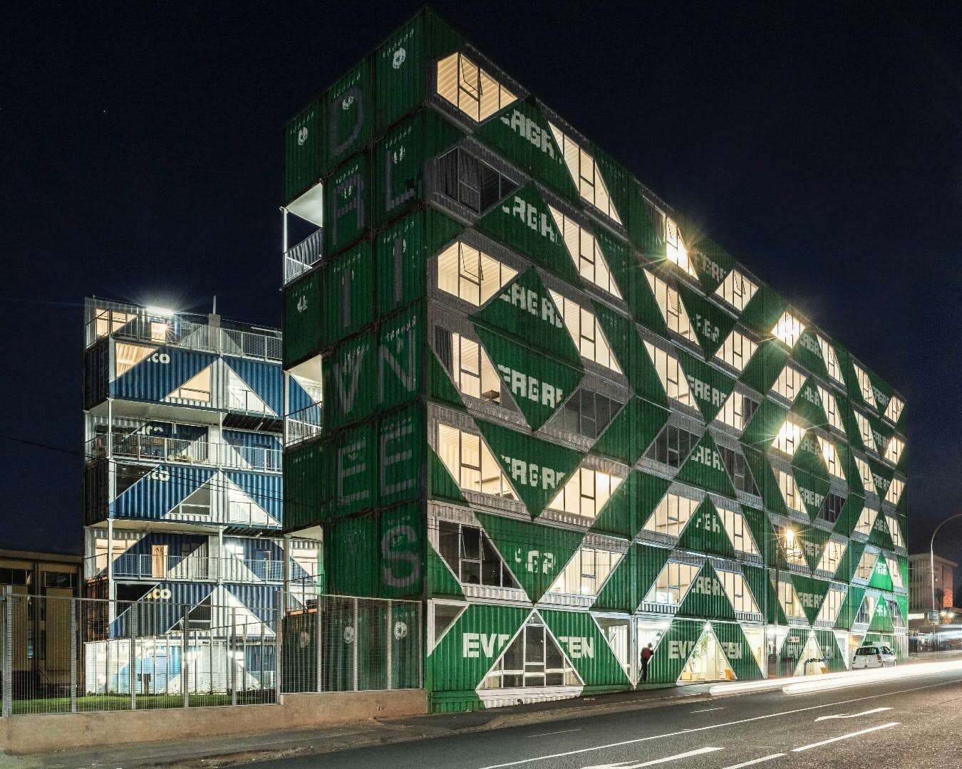 Kontenery zostały dobrane według kolorów a także nie były one malowane. Następnie ułożone je w bezpieczny stos, zamontowano i zmodyfikowano. Została założona izolacja, która ma na celu zwiększenie ich wydajności cieplnej. Firma dodała też funkcjonalne okna, schody czy windę. Całość ma siedem pięter i zajmuje 75 00 m^2.