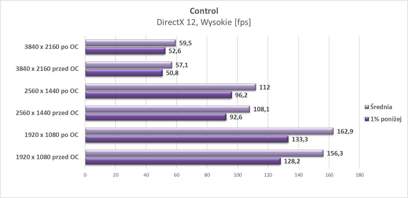 Ostatnio rozdzielczość to jak zwykle lekki pogrom, choć w większości tytułów wyniki są bliskie 60 fps. Tutaj również grafika wypada praktycznie tak samo jak Founders Edition, ale wyniki są oczywiście zawsze większe niż podkręconego RTX 3080.