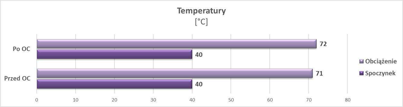 Grafika jest za to cichsza od konkurencji i ma półpasywny tryb pracy, więc w spoczynku możecie liczyć na idealną ciszę. Pobór mocy też jest trochę mniejszy, a temperatury w pełni akceptowalne. Pod tym względem karta prezentuje się całkiem nieźle.