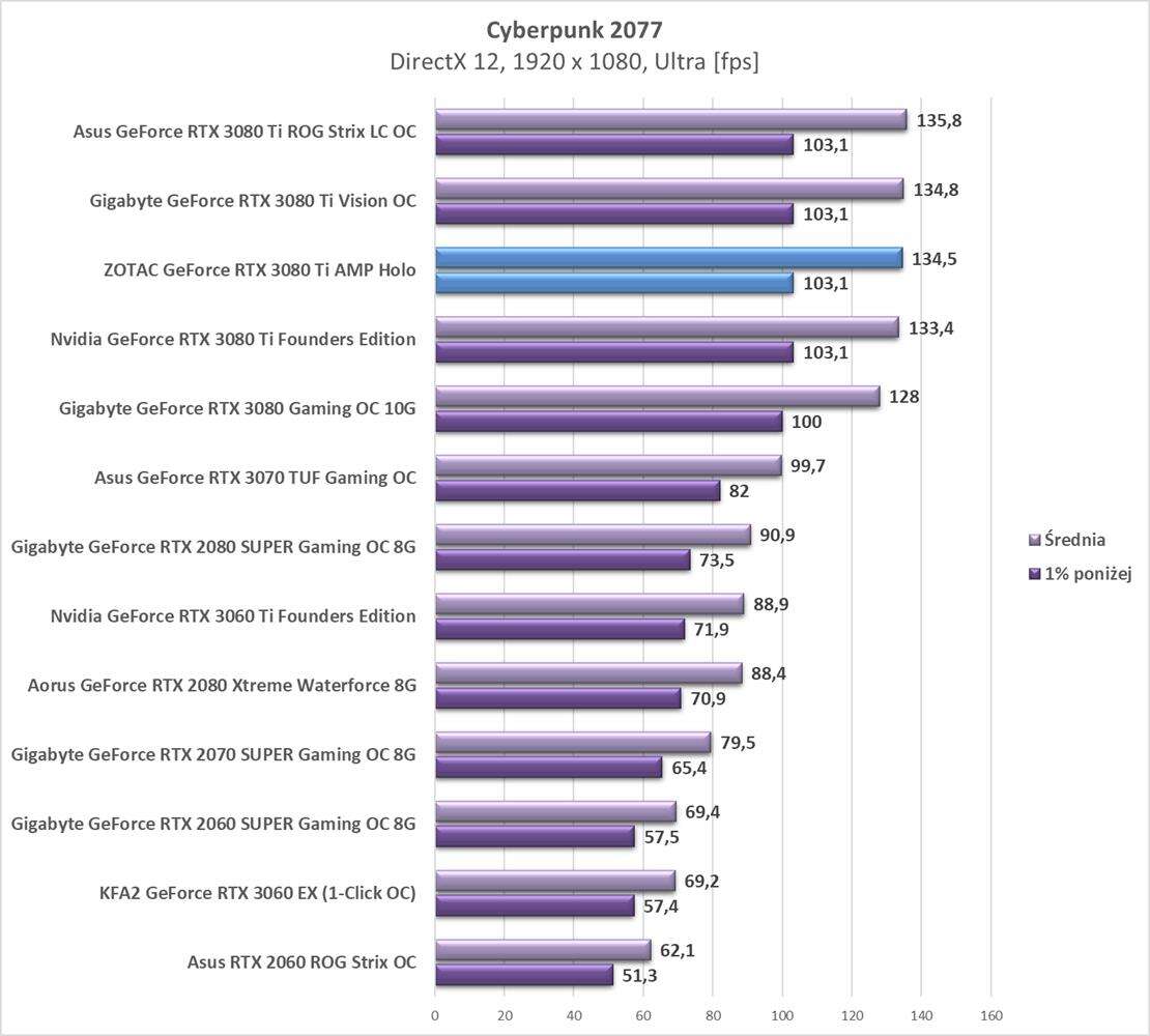 Testy ZOTAC GeForce RTX 3080 Ti AMP Holo w rozdzielczości 1920 x 1080