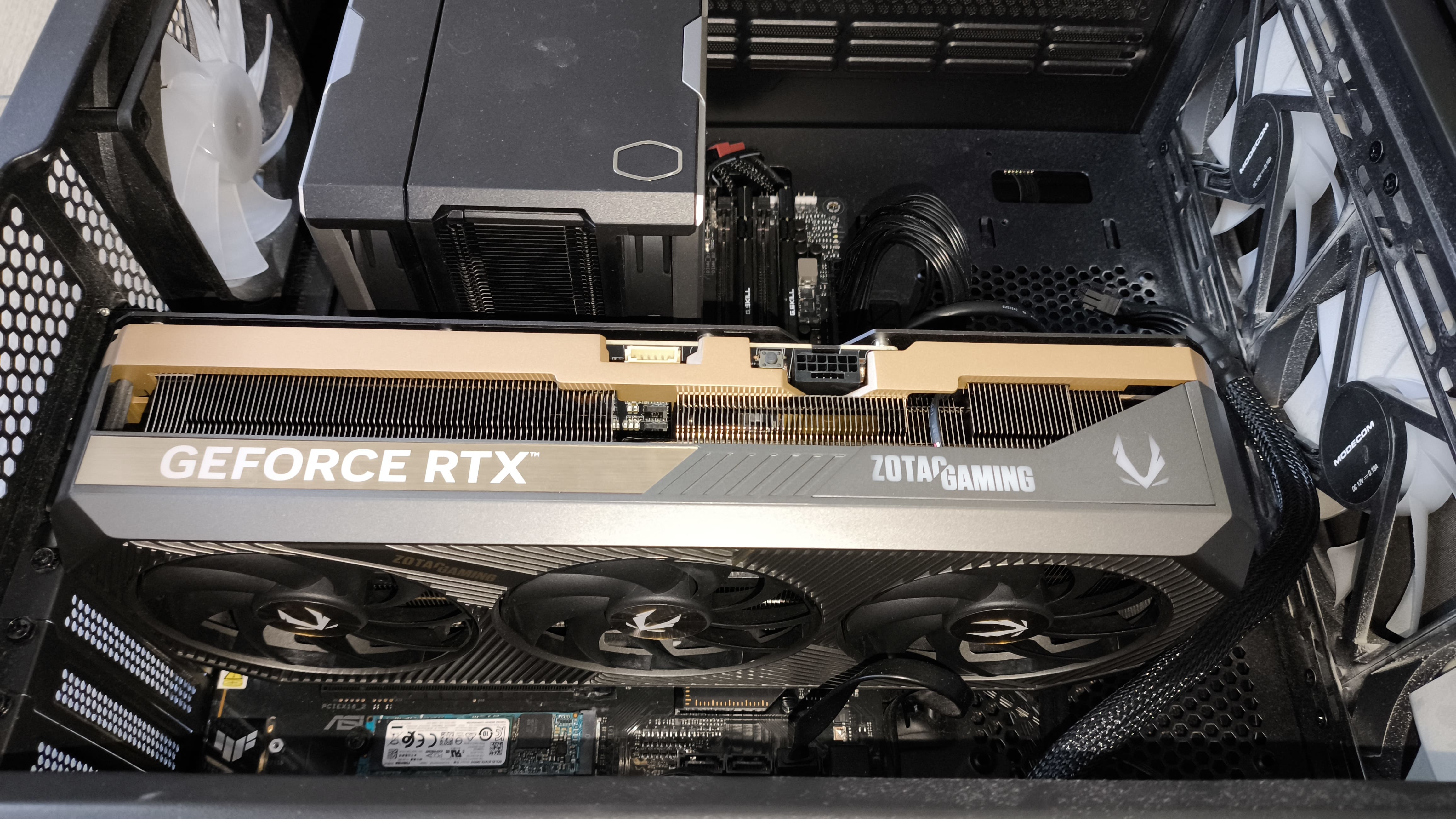 Karta nazywa się Solid i trudno chyba wyobrazić sobie lepsze określenie. Trzy duże wentylatory przyciągają w mojej opinii uwagę jako pierwsze. W chwili, gdy weźmiesz tę kartę do ręki, jej waga naprawdę Cię zaskoczy. Metalowy backplate, masywna ramka, ogromny radiator z komorą parową — Solid jest jak granit. A fakt, że Zotac był w stanie stworzyć tyle w takie cenie (tj. 5739-5799 złotych), dodaje całości aury niemal technologicznego cudu.