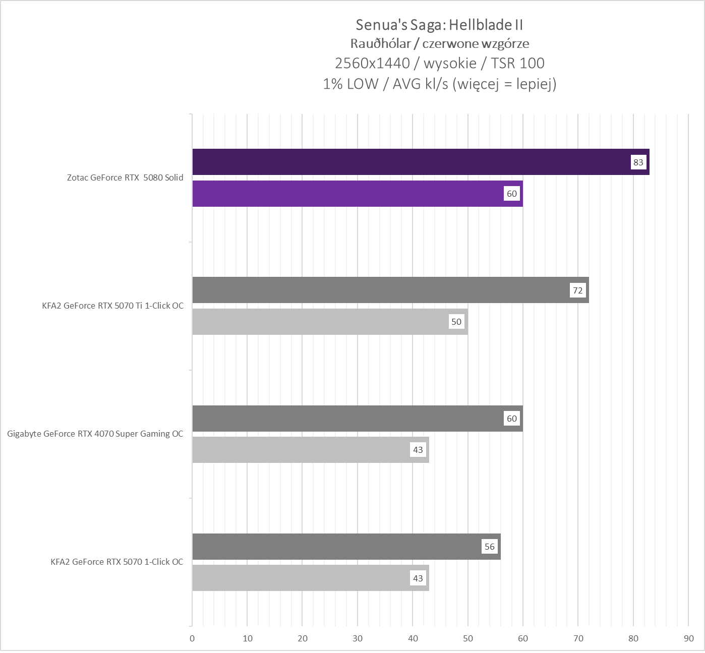 Gra w wysokim stopniu korzysta z wydajności samego procesora, dlatego redakcyjny Ryzen 5 9600X był tu dość widocznym ograniczeniem już w rozdzielczości 2560×1440.