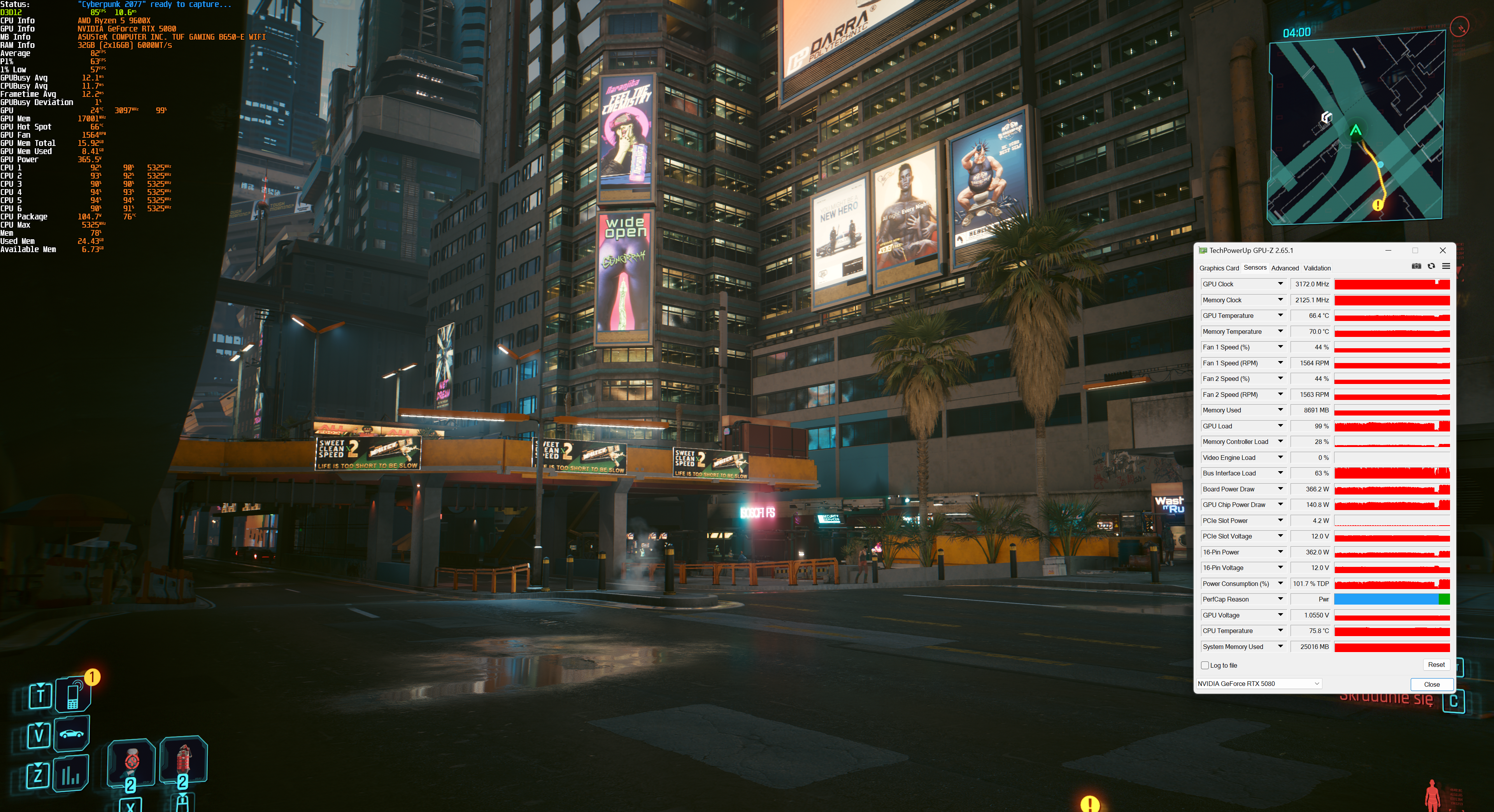 Podobny problem pojawił się również w Cyberpunk 2077, szczególnie podczas testów z aktywnym DLSS, ale bez włączonego Frame Generatora. Niezależnie od tego, czy testy przeprowadzałem w 1440p czy nawet w 1080p (dla porównania), średni FPS pozostawał niemal identyczny – co wyraźnie wskazuje na ograniczenie po stronie CPU. W rozdzielczości 4K problem ten całkowicie znika. AMD Ryzen 5 9600X to ogólnie udany i wydajny procesor, ale w niektórych scenariuszach jego możliwości mogą być niewystarczające dla topowych kart graficznych typu właśnie RTX’a 5080 (a już na pewno do RTX 5090).